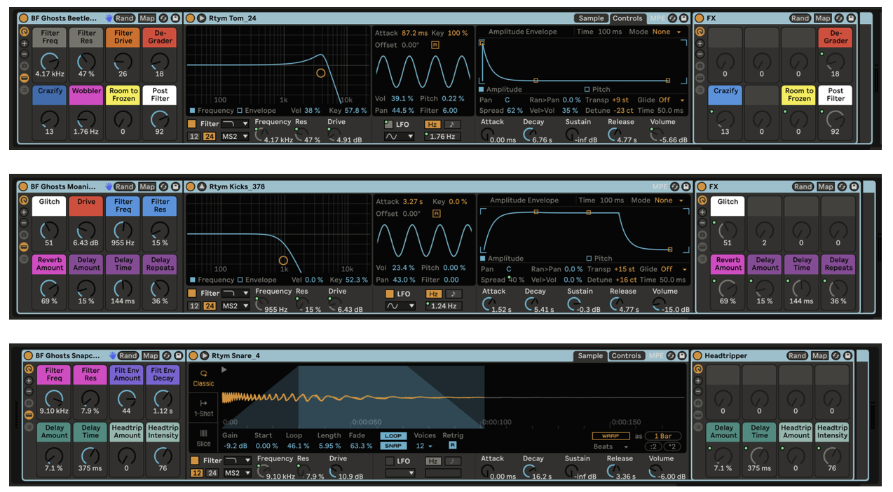 30 melodic Ableton Live Instrument Racks, inspired by famous ghosts. The sounds were created with ghosts of drum samples from the Electron Analog RYTM. The samples were transformed and looped, often just at the tail end of the drums' natural decay, creating a collection of deep and evocative sounds for your next production.