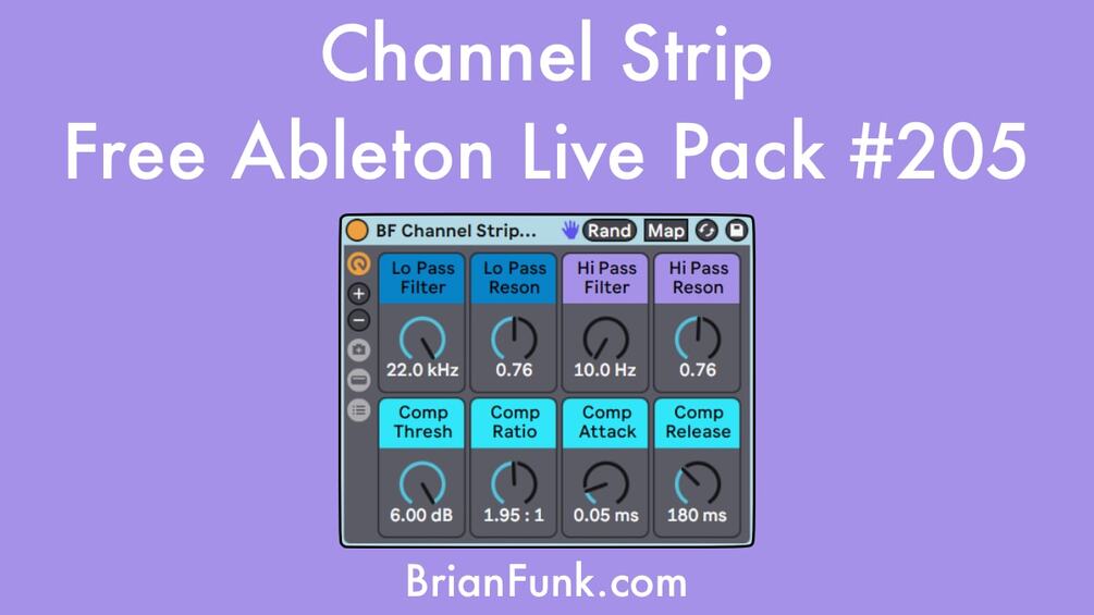Quickly adjust low and high frequencies, as well as compression settings with this easy-to-use channel strip Ableton Live Audio Effect Rack.